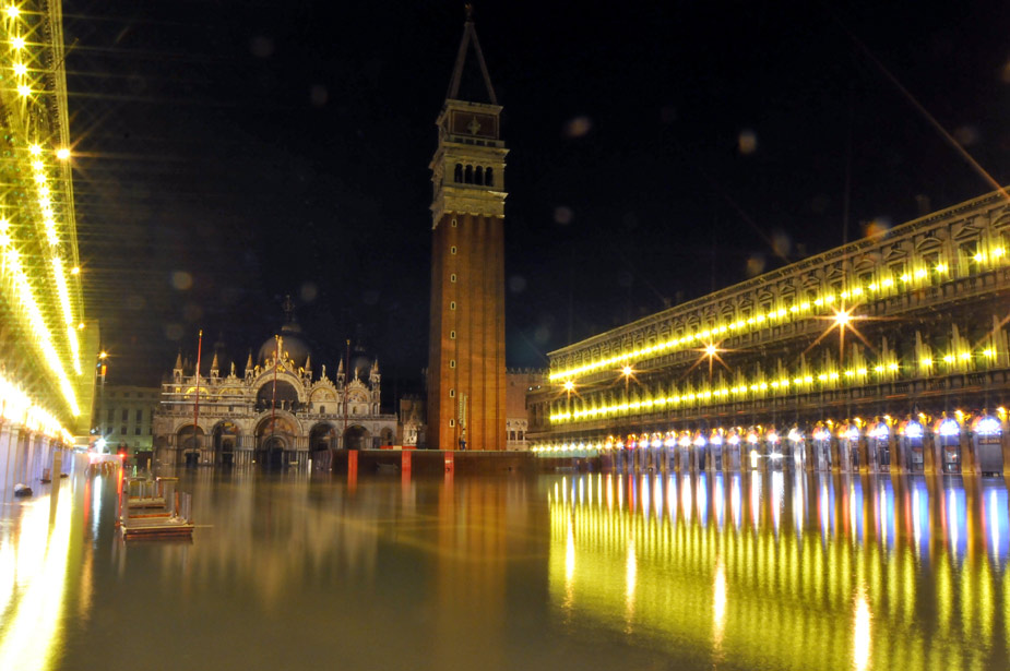 12月25日,意大利水城威尼斯圣馬可廣場被洪水浸泡。自從11月份以來,水城威尼斯受潮汐和一股強烈的熱帶風暴影響屢遭洪水“淹沒”。