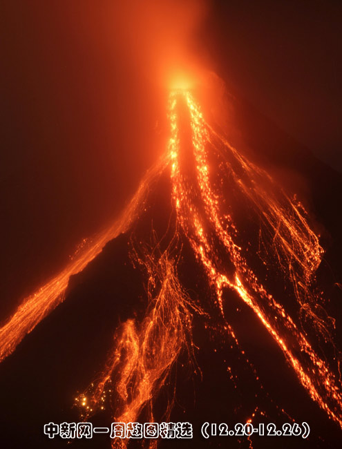 12月23日,菲律賓阿爾拜省黎加斯比市馬榮火山口噴發(fā)大量巖漿。圖片來源:中國新聞網(wǎng)>>點(diǎn)擊觀看詳細(xì)內(nèi)容