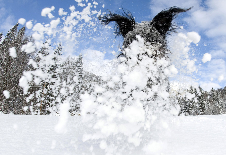 1月3日,奧地利的薩爾茨堡省,一只小狗在雪地里撒歡。
