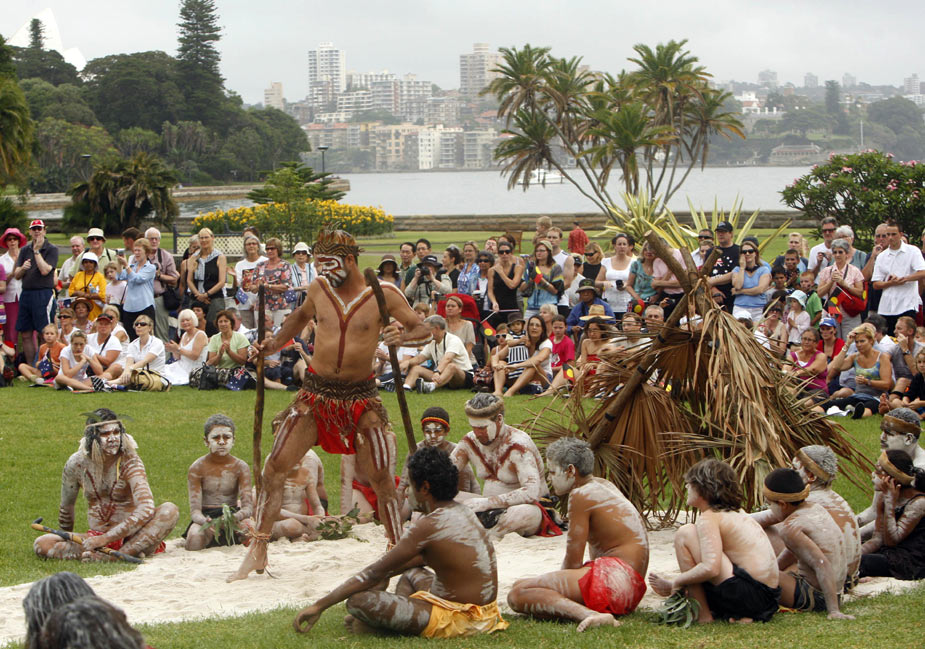1月26日,澳大利亞土著居民在悉尼表演傳統舞蹈慶祝澳大利亞國慶日。
