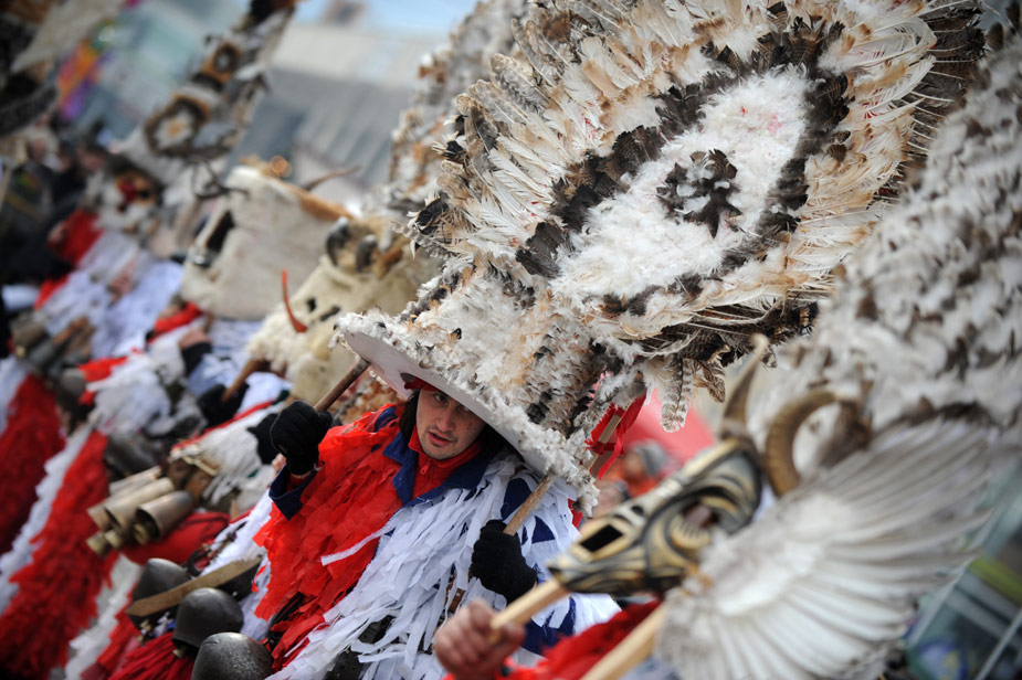 1月29日,為期三天的國際面具狂歡節(jié)在保加利亞小鎮(zhèn)佩爾尼克開幕,來自14個國家的6000多名演員參加了表演。圖片來源:中國新聞網(wǎng)