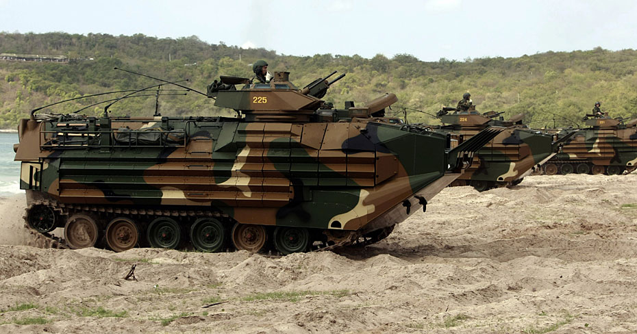 2月4日,參加“金色眼鏡蛇”聯(lián)合軍演的各國軍隊(duì),在泰國的Rayong省沙灘進(jìn)行了兩棲登陸演練。本次聯(lián)合軍演共有來自泰國、美國、印度尼西亞、新加坡、日本、韓國的約1.4萬名軍人參加。圖片來源:中國新聞網(wǎng)