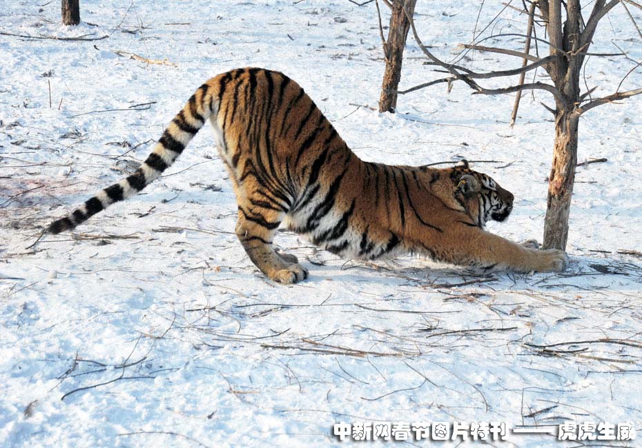 1月13日,黑龍江東北虎林園,老虎在雪地中嬉戲追逐。(王少華 張書儉 攝) 圖片來源:中國新聞網