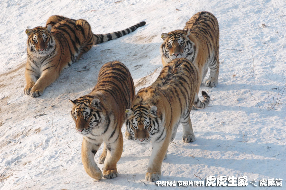 1月13日,黑龍江東北虎林園,老虎在雪地中嬉戲追逐。(王少華 張書儉 攝)