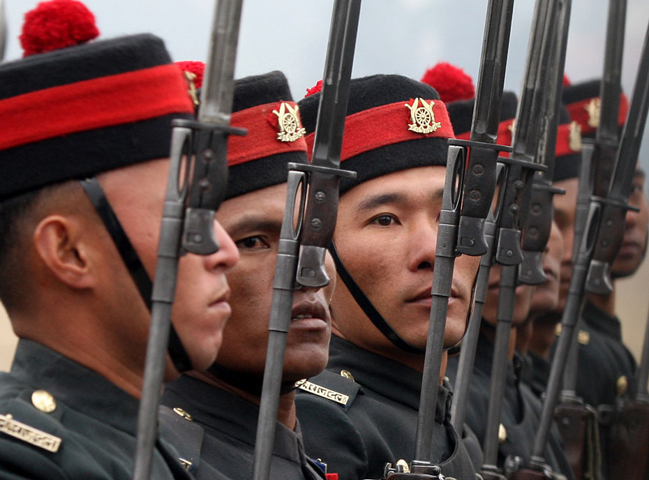 當(dāng)?shù)貢r間2月12日,尼泊爾士兵在首都加德滿都舉行了建軍節(jié)閱兵式。尼泊爾總統(tǒng)和總參謀長檢閱了受閱部隊。圖片來源:中國新聞網(wǎng)