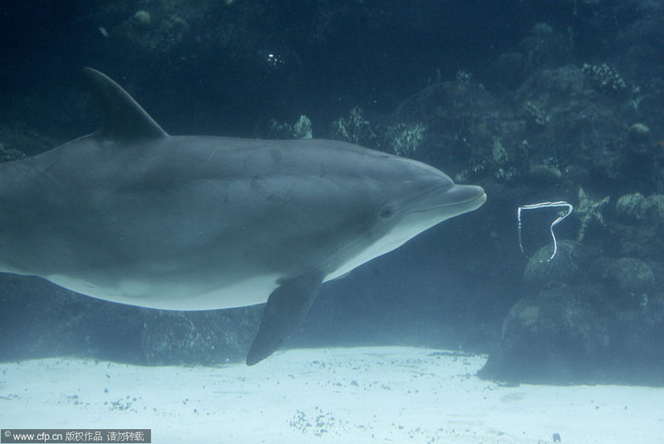 近日,美國奧蘭多海洋世界的一只寬吻海豚吹出“心形”氣泡,似乎要在情人節來臨前夕傳達濃濃愛意。圖片來源:CFP