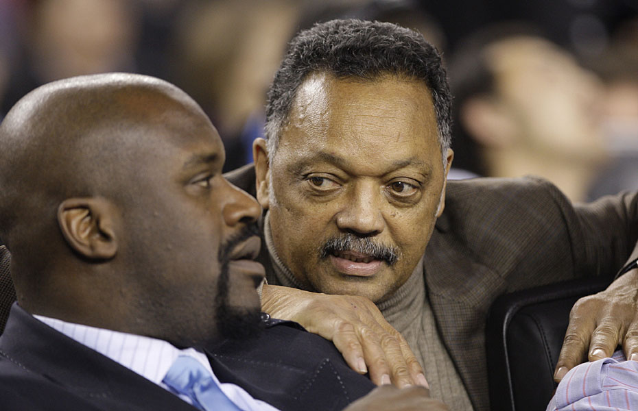 圖為大鯊魚奧尼爾(左)在全明星賽上充當看客。