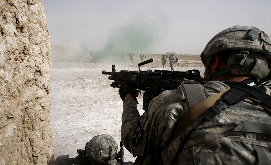 以美國為主的北約與阿富汗盟軍對阿南部城市馬爾賈的清剿活動14日進入了第二天。隨著巷戰(zhàn)展開,交火愈加頻繁和激烈。圖片來源:中國新聞網(wǎng)