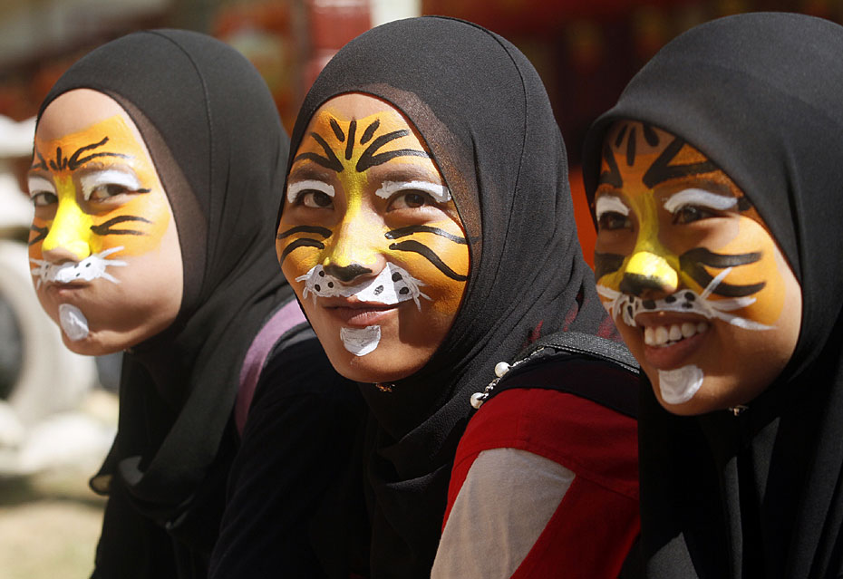 2月20日,馬來西亞民眾圍聚在首都吉隆坡附近的佛光山東禪寺,紛紛將自己繪成老虎的樣子,呼吁大家保護野生虎。圖片來源:中國新聞網