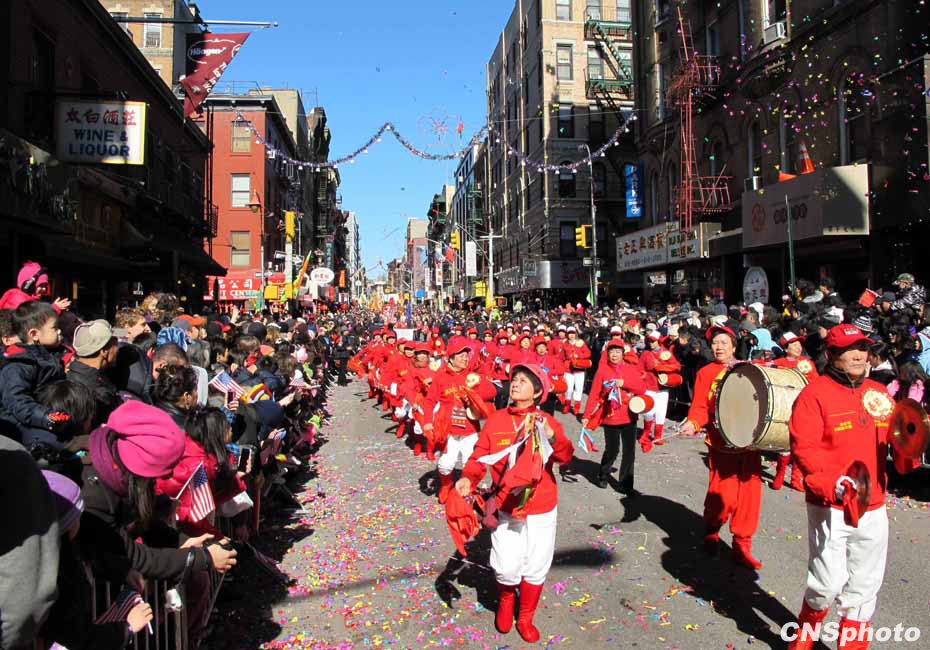 虎年紐約華埠慶祝農(nóng)歷新年“重頭戲”花車大游行21日登場(chǎng),吸引超過10萬(wàn)人圍觀共同狂歡,成為歷年來參加人數(shù)最多的一次花車游行。12輛盛裝花車以及數(shù)千人的表演團(tuán)隊(duì)沿著華埠最熱鬧的數(shù)十條街道一邊行進(jìn)一邊表演,滿天彩帶飄揚(yáng),場(chǎng)面熱鬧非常。中新社發(fā) 魏晞 攝