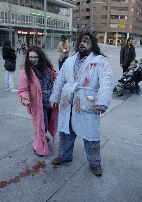 當地時間2月27日,在西班牙馬德里,眾多愛好者裝扮成“僵尸”的模樣,在街頭舉行巡游活動。