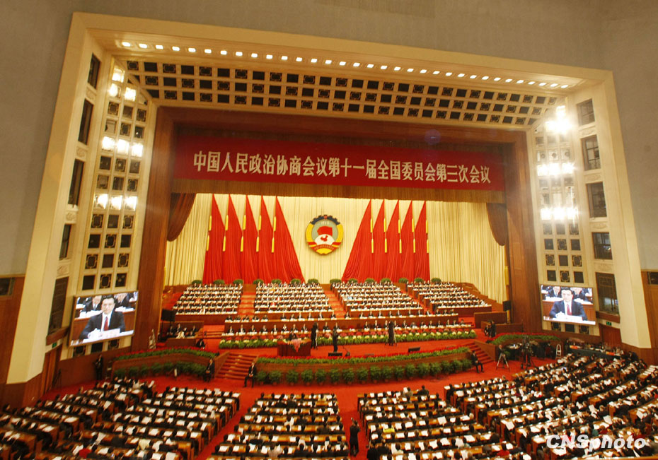 3月3日下午,中國政治生活中的年度盛會——全國政協十一屆三次會議在北京人民大會堂隆重開幕。圖片來源:中國新聞網