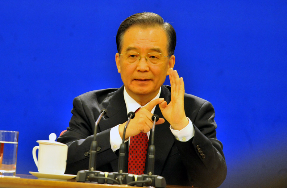 3月14日上午,國務院總理溫家寶在人民大會堂三樓金色大廳與采訪十一屆全國人大三次會議的中外記者見面并回答記者提出的問題。中新社記者 賈國榮 攝 圖片來源:中國新聞網