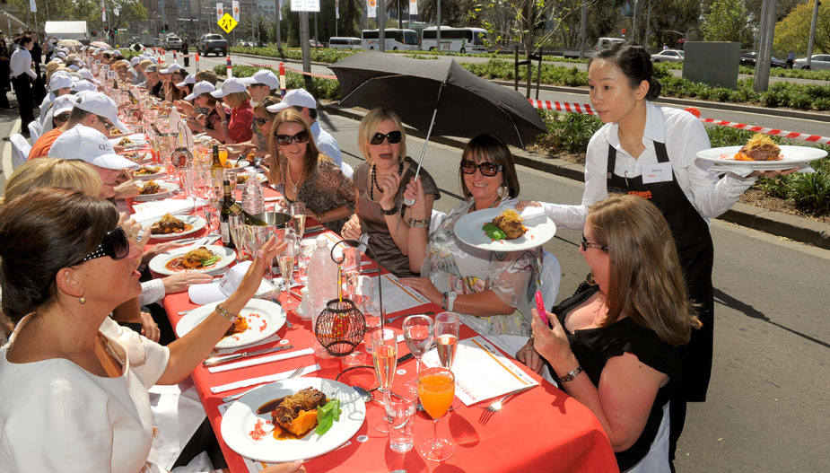 近日,澳大利亞墨爾本,人們在號稱“世界上最長的午餐”活動中享受美味佳肴。圖片來源:中國新聞網
