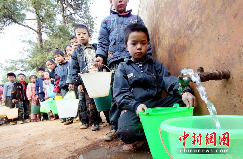 送水車(chē)將水送入水窯,晚飯后是孩子們排隊(duì)取水的時(shí)間。沙浪 攝(CFP)