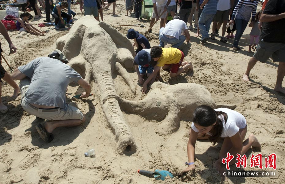 4月5日,以色列國家公園和自然保護區管理局在北城鎮Beit Yanai舉行了一年一度的沙雕大賽。世界眾多國家的沙雕愛好者前來參賽。圖片來源:中國新聞網