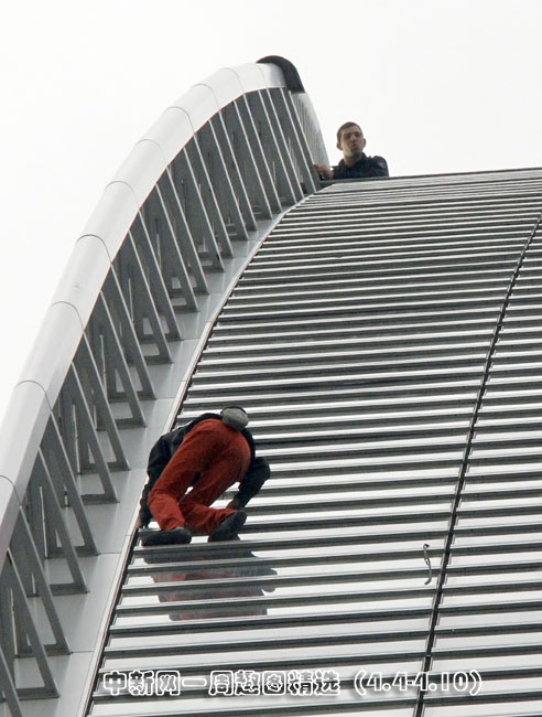 4月7日,巴黎,法國“蜘蛛人”羅伯特當日用了大約50分鐘成功攀爬185米高的法國燃氣蘇伊士集團大樓。圖片來源:中國新聞網>>點擊觀看詳細內容