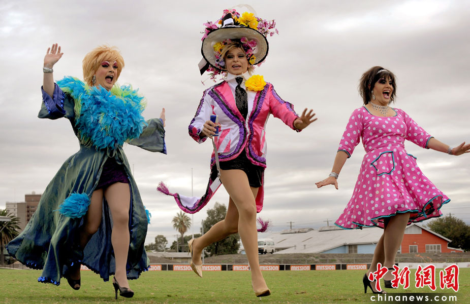 4月10日,在澳大利亞墨爾本,人們穿著高跟鞋賽跑。旨在挑戰多人穿高跟鞋賽跑的吉尼斯世界紀錄。盡管最終挑戰失敗,參賽者仍在80米的賽道上爭先恐后,各顯神通。