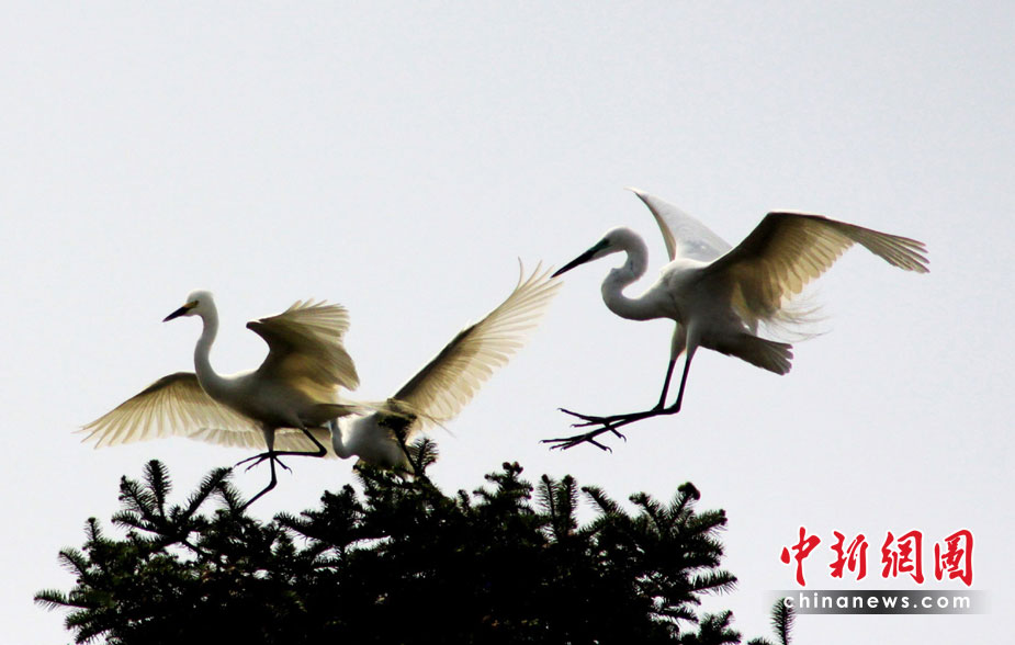 4月9日,一對白鷺在象山森林公園歡躍飛舞,譜寫一曲春日戀歌。四月,正值芳草萋萋,萬物生機勃勃。萬余只白鷺陸續(xù)抵達江西南昌象山森林公園棲息,繁衍后代,成為鄱陽湖濕地的一大獨特景觀, 吸引眾多攝影愛好者前來拍攝和觀賞。孫永勝 胡國林 攝