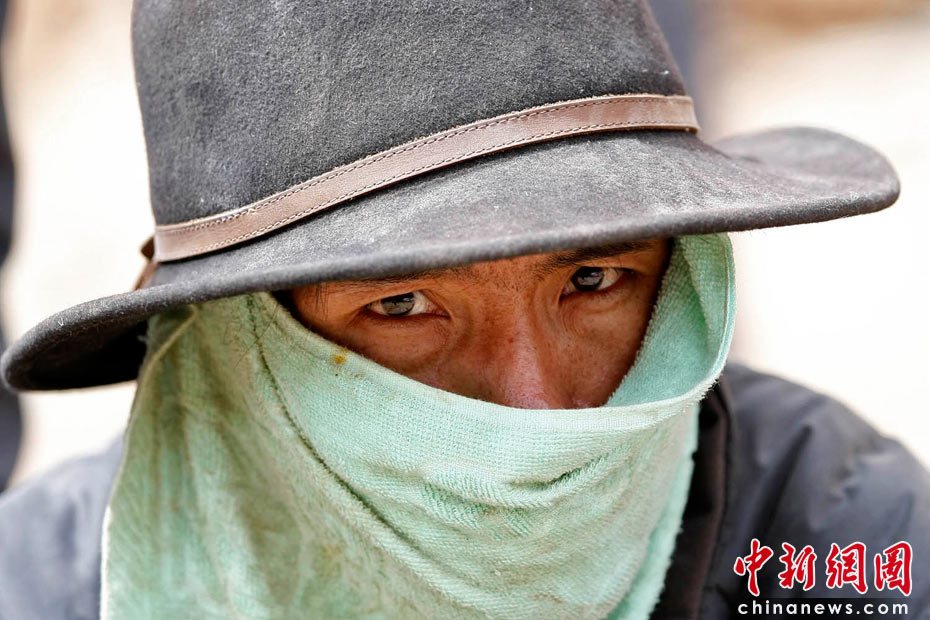 2010年4月16日,青海玉樹藏族自治州玉樹縣結古鎮一所中學的震災救援現場,一名救援人員的目光中充滿渴望,期待生命奇跡。中新社發 盛佳鵬 攝