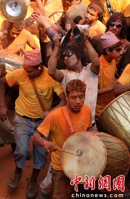 尼泊爾歡慶尼歷新年 人群街頭灑紅狂歡