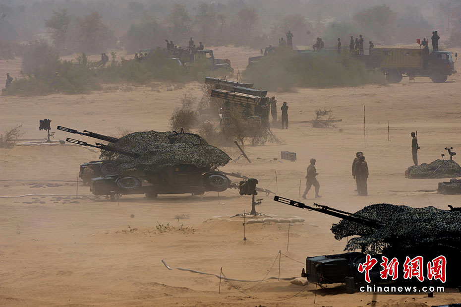 巴基斯坦軍隊4月18日出動戰(zhàn)機、坦克和重型火炮,在靠近印度邊界的東部沙漠地區(qū)舉行“新決心—3”軍事演習(xí)。圖片來源:中國新聞網(wǎng)