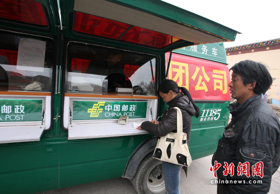 4月20日,寧夏郵政抗震救災(zāi)突擊隊(duì)六輛全電子移動(dòng)郵政業(yè)務(wù)車開進(jìn)玉樹地震災(zāi)區(qū),開始受理市民信函、金融等業(yè)務(wù)辦理,目前玉樹城內(nèi)已有多家銀行機(jī)構(gòu)和商業(yè)網(wǎng)點(diǎn)開始恢復(fù)營業(yè)。圖為玉樹街頭市民正在排隊(duì)辦理郵政業(yè)務(wù)。中新社發(fā) 劉忠俊 攝