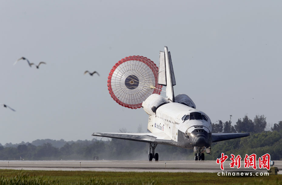 美國(guó)發(fā)現(xiàn)號(hào)航天飛機(jī)于當(dāng)?shù)貢r(shí)間4月20日成功降落在佛羅里達(dá)州肯尼迪航天中心,結(jié)束了為期15天的國(guó)際空間站建設(shè)之旅。圖片來(lái)源:中國(guó)新聞網(wǎng)