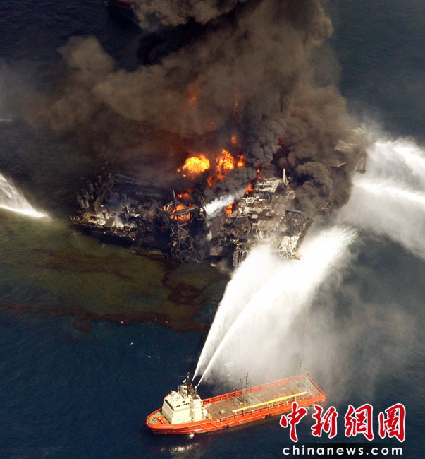 4月21日,美國路易斯安那州一處海上鉆井平臺發生爆炸,造成至少11人失蹤、7人重傷。這起爆炸發生在20深夜,但直到21日中午,爆炸引起的大火仍在熊熊燃燒。目前鉆井平臺已嚴重傾斜超過70度,隨時可能傾覆入海。