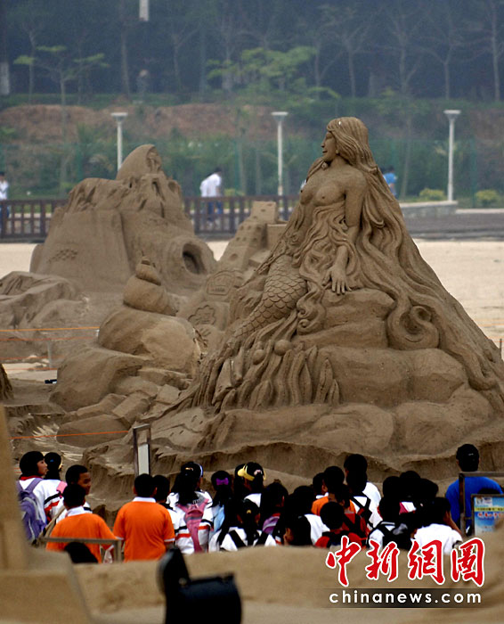 第三屆廈門觀音山沙雕文化公園于4月22日在廈門觀音山黃金沙灘投入試運營。本屆沙雕文化公園將以“暢游歷史”及“世博文化”為主題,共匯集70余座沙雕作品,規模繼續在亞洲稱雄。本次2010年觀音山沙雕文化公園將分為六大區域,分別是歷史主題區、世博專區、海洋文化區、競賽區、DIY體驗區和休閑配套區。尤以世博專區和歷史主題區為展示重點。王東明 攝