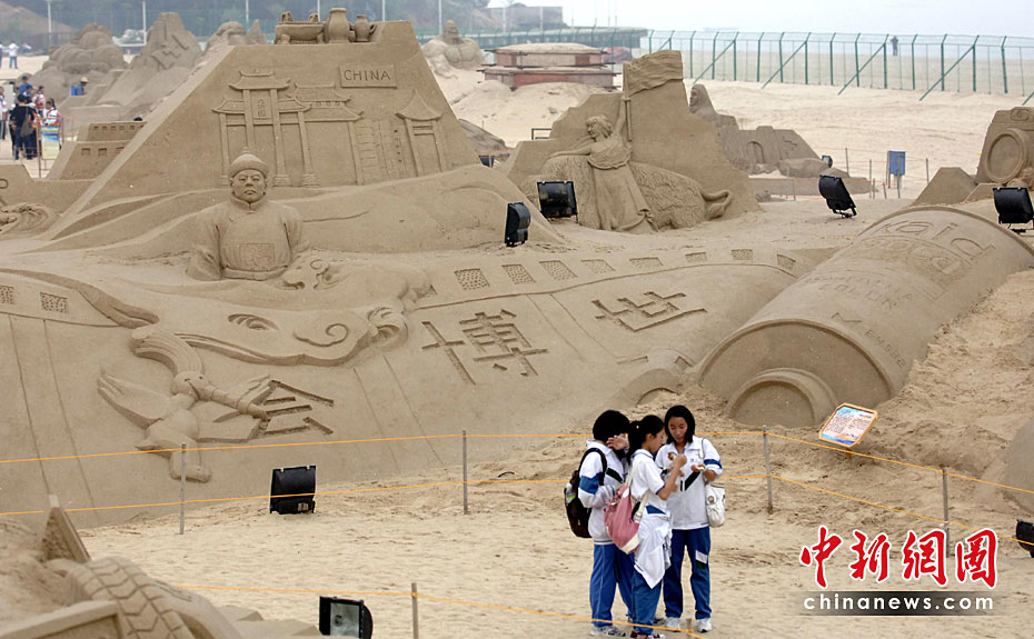第三屆廈門觀音山沙雕文化公園于4月22日在廈門觀音山黃金沙灘投入試運營。本屆沙雕文化公園將以“暢游歷史”及“世博文化”為主題,共匯集70余座沙雕作品,規模繼續在亞洲稱雄。本次2010年觀音山沙雕文化公園將分為六大區域,分別是歷史主題區、世博專區、海洋文化區、競賽區、DIY體驗區和休閑配套區。尤以世博專區和歷史主題區為展示重點。王東明 攝