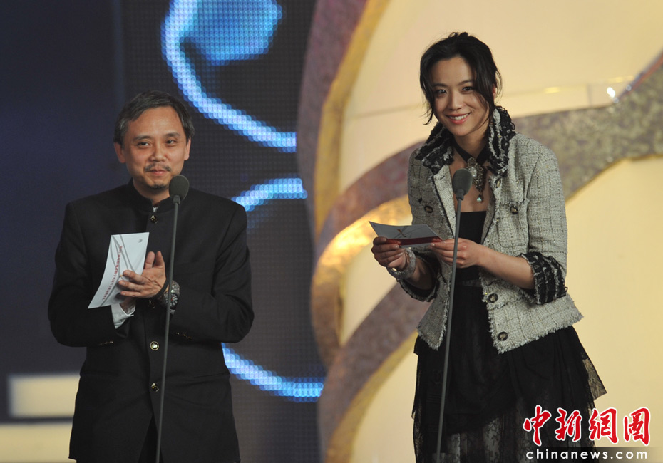 4月28日,第十屆電影頻道數字電影百合獎頒獎典禮舉行。湯唯攜手陳嘉上成為頒獎嘉賓為優秀男演員頒獎。呂聿來、王景春獲得優秀男演員將,優秀女演員被吳越、董玲搬走。 中新網記者 金碩 攝