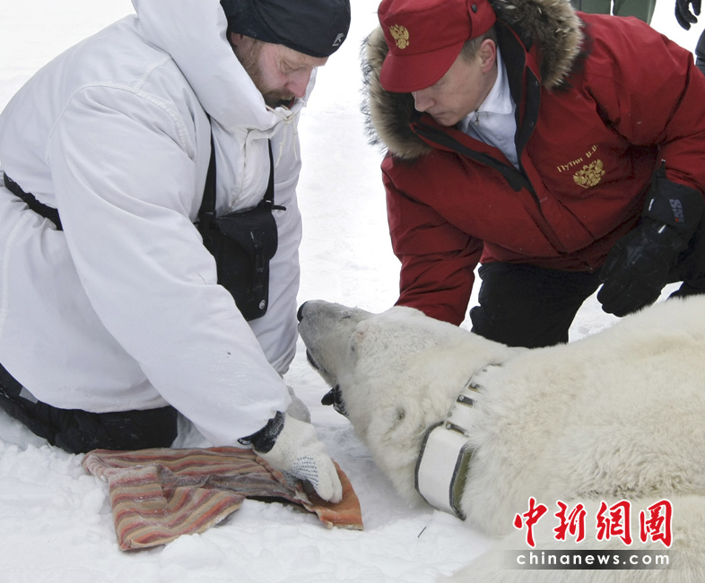 4月29日,俄羅斯總理普京參觀亞歷山大地島(法蘭士約瑟夫地群島)。 普京還與在研究學者一同給通過專門的陷阱捕獲的北極熊戴上衛星定位項圈。此外,學者們還與普京一起給北極熊進行測量和秤體重,