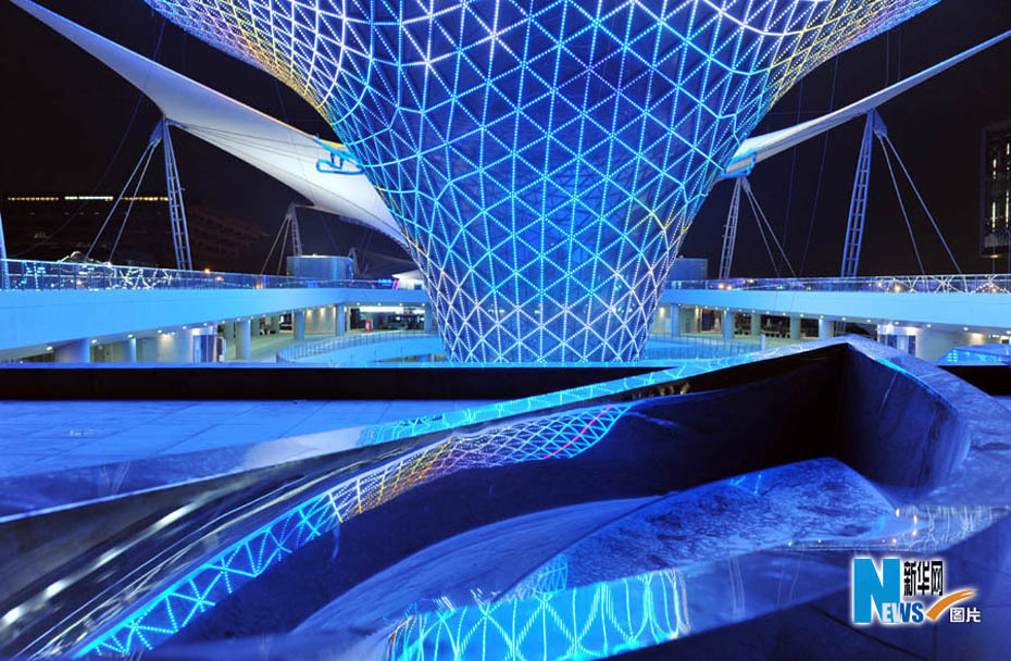 靜待開幕的世博園沉浸在一片暮色中,流光溢彩,給人無限遐想。從外灘到世博園,“夜”上海不斷延伸,讓人激情跳躍。圖片來源:新華網孫巍攝