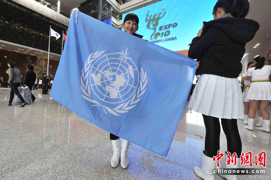 5月1日,為2010年上海世博會開園服務的國旗女孩們,顯示出濃厚的國家和世界情結。中新社記者 賈國榮攝