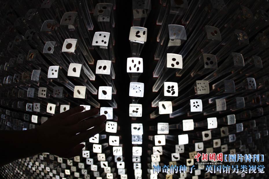 上海世博園開園才數日,自號“種子圣殿”的英國館已成人氣最旺場館之一。該館由6萬根亞克力桿巧妙構成,隨風搖動,頗為新奇。其每根桿子里都含有植物種子。中新社記者 盛佳鵬 攝