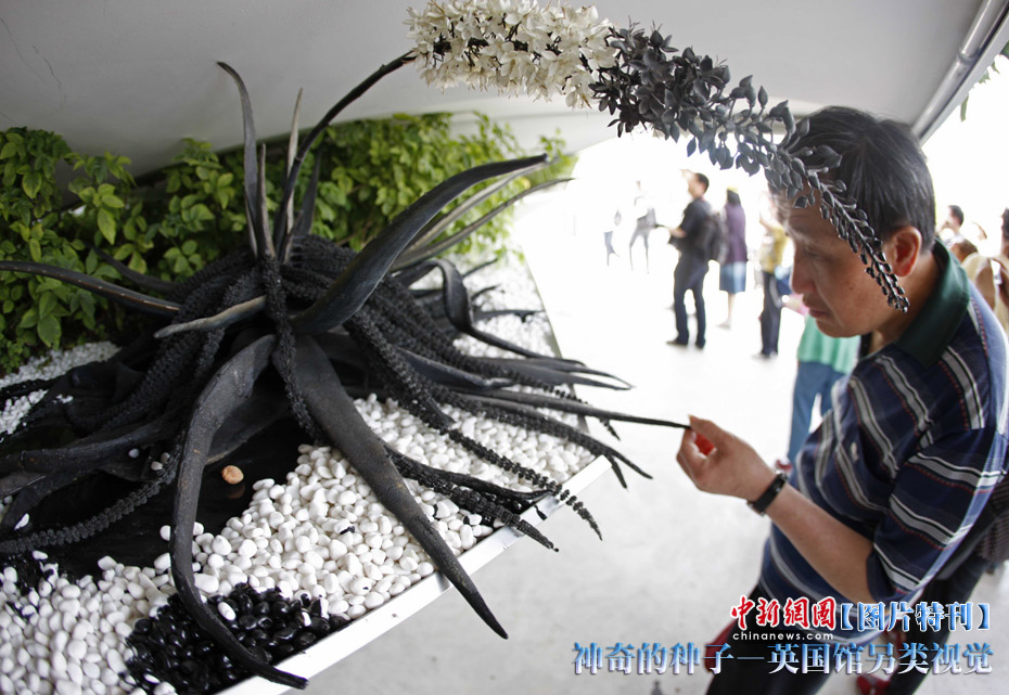 上海世博園開園才數(shù)日,自號(hào)“種子圣殿”的英國(guó)館已成人氣最旺場(chǎng)館之一。該館由6萬根亞克力桿巧妙構(gòu)成,隨風(fēng)搖動(dòng),頗為新奇。其每根桿子里都含有植物種子。中新社記者 盛佳鵬 攝