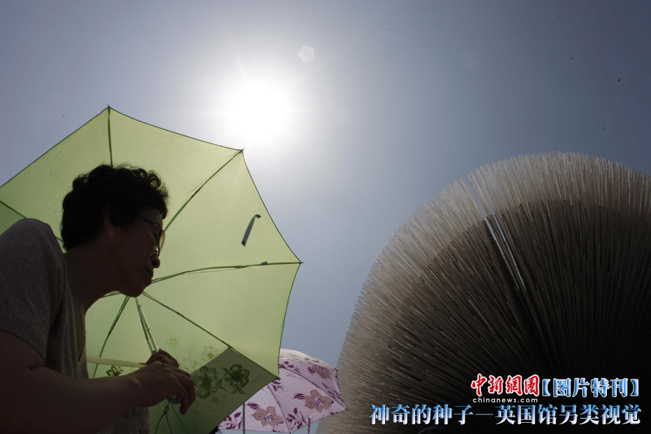 上海世博園開園才數(shù)日,自號“種子圣殿”的英國館已成人氣最旺場館之一。該館由6萬根亞克力桿巧妙構(gòu)成,隨風(fēng)搖動,頗為新奇。其每根桿子里都含有植物種子。中新社記者 盛佳鵬 攝