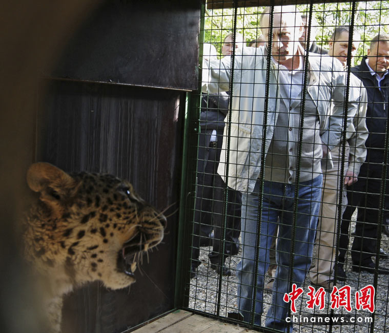 近日,俄羅斯總理普京來到2014年冬奧會舉辦地索契一家動物園,觀看一頭用東北虎換來的波斯豹。普京饒有興致地觀察了一會兒后,對這頭剛剛到來、還有些認生的豹說:“別害怕,跑起來”,還向它做了個飛吻。此次從伊朗引進波斯母豹,是希望與本地的土庫曼尼斯坦公豹交配,以挽救這一瀕臨滅絕的物種。