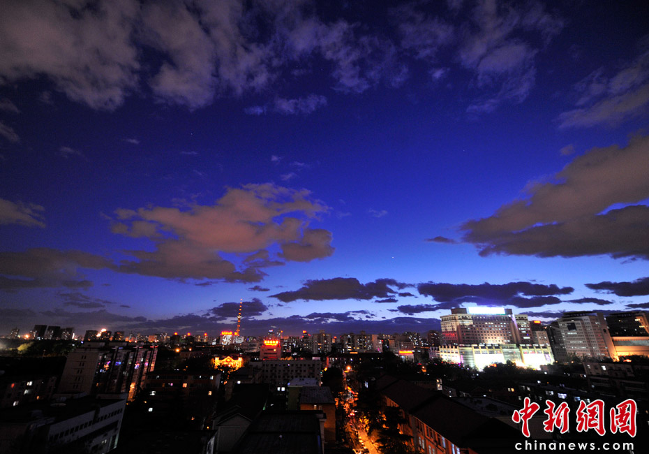 5月5日立夏,京城降雨今晨剛剛結束,霧氣伺機又起。傍晚時分,隨著四級北風的到來,京城天氣逐漸轉晴,霧氣慢慢消散天空彤云密布夜色瑰麗。中新網記者 金碩 攝