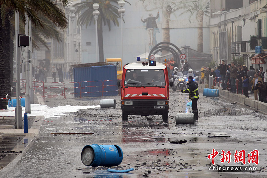 近日,在法國南部城市尼斯,巨浪襲擊城市的海岸后造成城市道路癱瘓。法國南部部分地區遭遇大風和巨浪,使當地交通和供電受到不同程度的影響。圖片來源:中國新聞網
