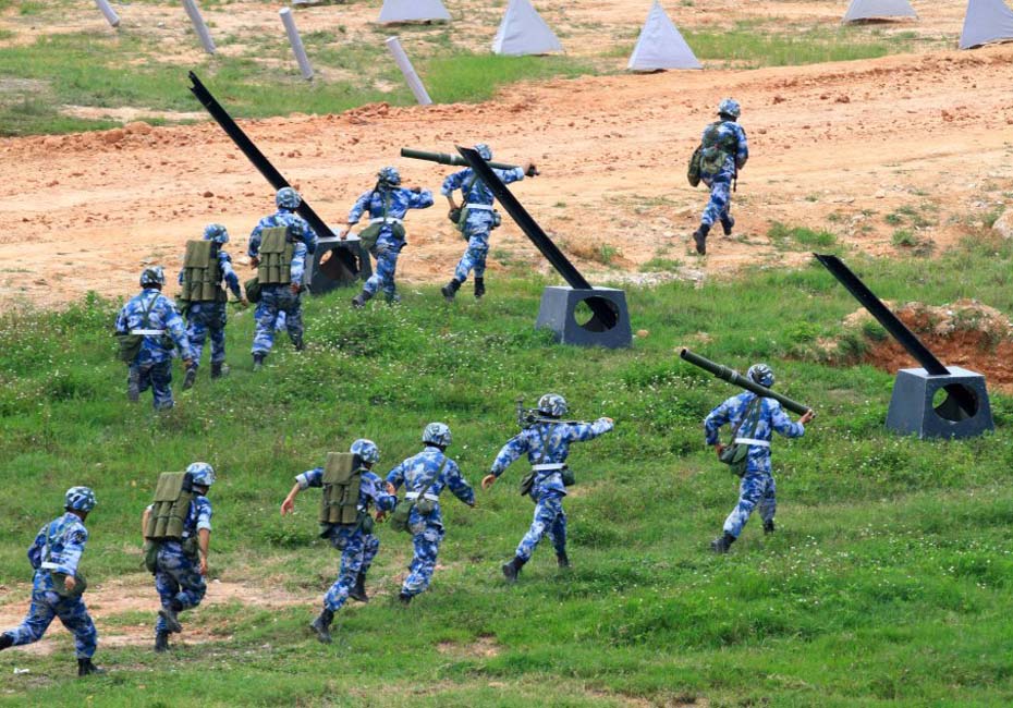 海軍陸戰隊進行登陸作戰實兵實彈演練。圖片來源:新華網 查春明攝