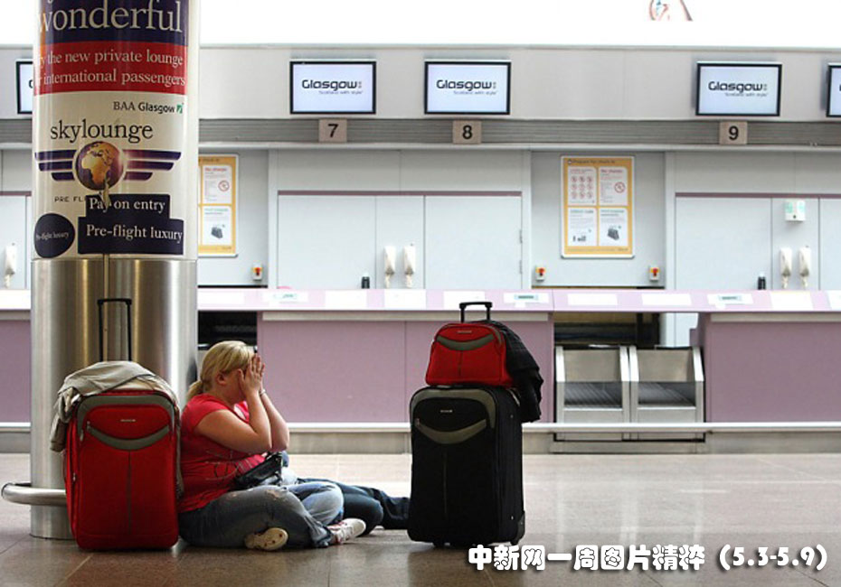 5月5日周三,在格拉斯哥機(jī)場,由于冰島新一波濃密火山灰導(dǎo)致航班取消,一名女士沮喪地用手遮住臉。愛爾蘭和蘇格蘭的空中交通均受到影響,英格蘭則僥幸未受波及。
