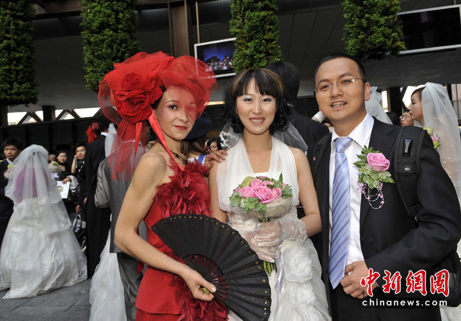 5月11日,35對新人來到世博法國館內舉行婚禮儀式。法國館舉行“法蘭西浪漫婚典”的集體婚禮。中新社發 吳元峰 攝
