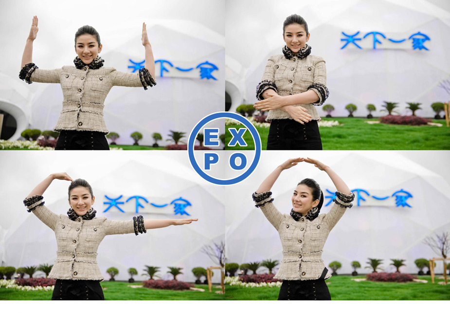 世博會(huì)盛大開幕,明星志愿者們都積極為宣傳世博貢獻(xiàn)出力。作為“世博手勢(shì)形象大使”,同時(shí)也是上海女孩,黃奕非常自豪地在家門口迎接這一場(chǎng)盛事。日前她來(lái)到世博館“天下一家”未來(lái)館門口拍攝一組手勢(shì)大片,身體力行腳大家如何演繹EXPO的含義,黃奕表示,自己有興趣更有義務(wù)宣傳世博,工作中有機(jī)會(huì)都會(huì)教各地小朋友們學(xué)習(xí)這個(gè)手勢(shì),此前還曾在合肥現(xiàn)場(chǎng)教兩萬(wàn)人一起做,感覺(jué)非常興奮。