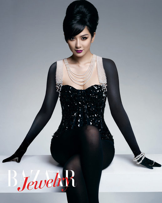高高蓬起的發(fā)髻,剪裁流暢的禮服,還有頸上那串珍珠,沒有刺眼的光芒,沒有絢麗的色彩,典雅且華麗著。如此妝容會(huì)讓你想起老上海的名媛佳麗,或是奧黛麗赫本的回眸一笑,那些雋永的美麗。然而當(dāng)女主角變成黃奕,優(yōu)雅之外更多的是驚喜。亮紫、淺棕、朱紅,這些原本與經(jīng)典無關(guān)的色彩,在她身上完美的契合,典雅之外的俏皮,精彩之后的永恒,也許,黃奕拍攝的不僅僅是中國頂級(jí)的一線雜志《芭莎珠寶》的封面大片,更是她別具一格的生活姿態(tài)。
