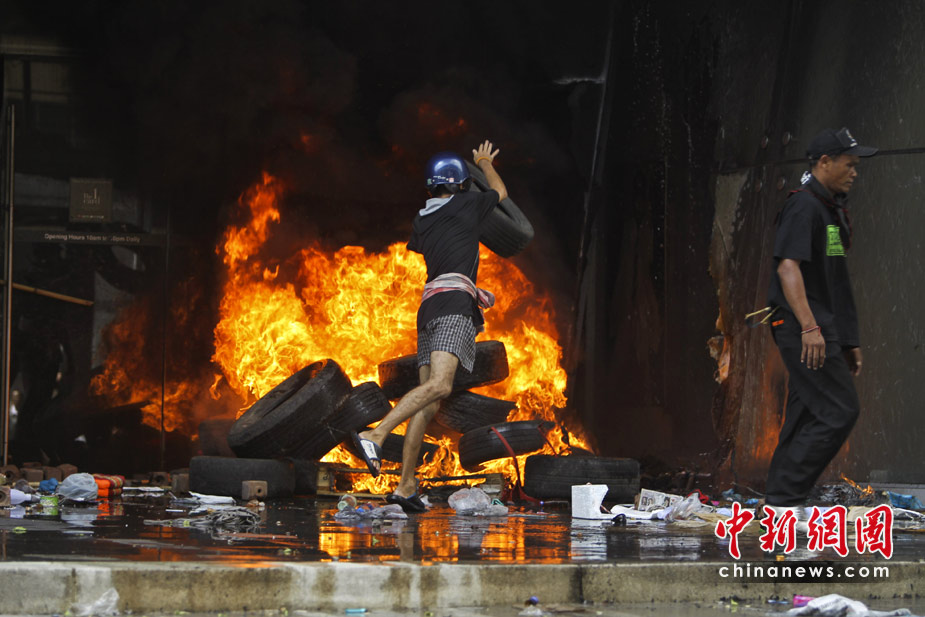 泰國軍方19日清場,希望將陷入內戰邊緣的曼谷拯救出來,雖然紅衫軍節節敗退,但有激進分子未肯罷休,四處放火,電視臺、股票交易所、電力公司、幾間銀行、商場戲院都遭殃,商場和便利店亦成為搶掠目標。據報曼谷有27處地方起火,泰國最大的商場Central World、Siam Square和Siam Paragon三大購物中心被縱火,其中Central World燒通頂,據報快將倒塌。