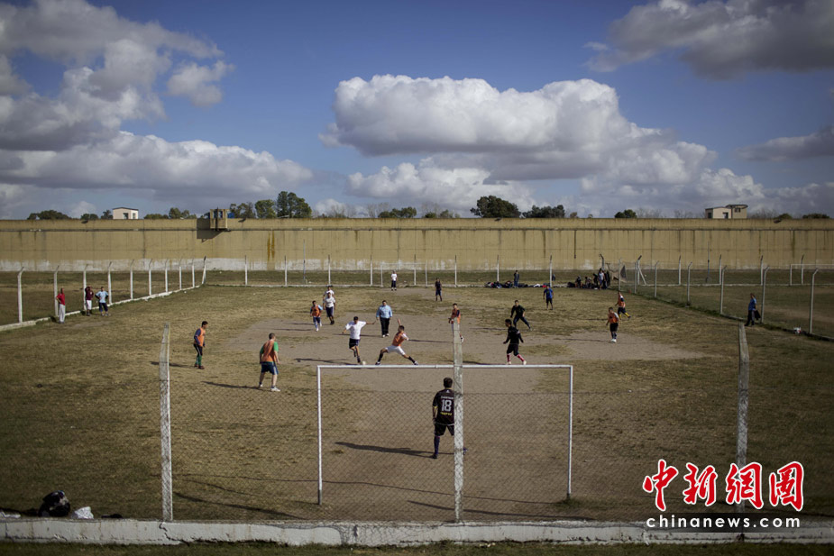 5月18日,阿根廷布宜諾斯艾利斯,作為一項(xiàng)文化活動(dòng)的一部分,阿根廷政府在世界杯到來(lái)之前組織幾家監(jiān)獄進(jìn)行足球比賽。