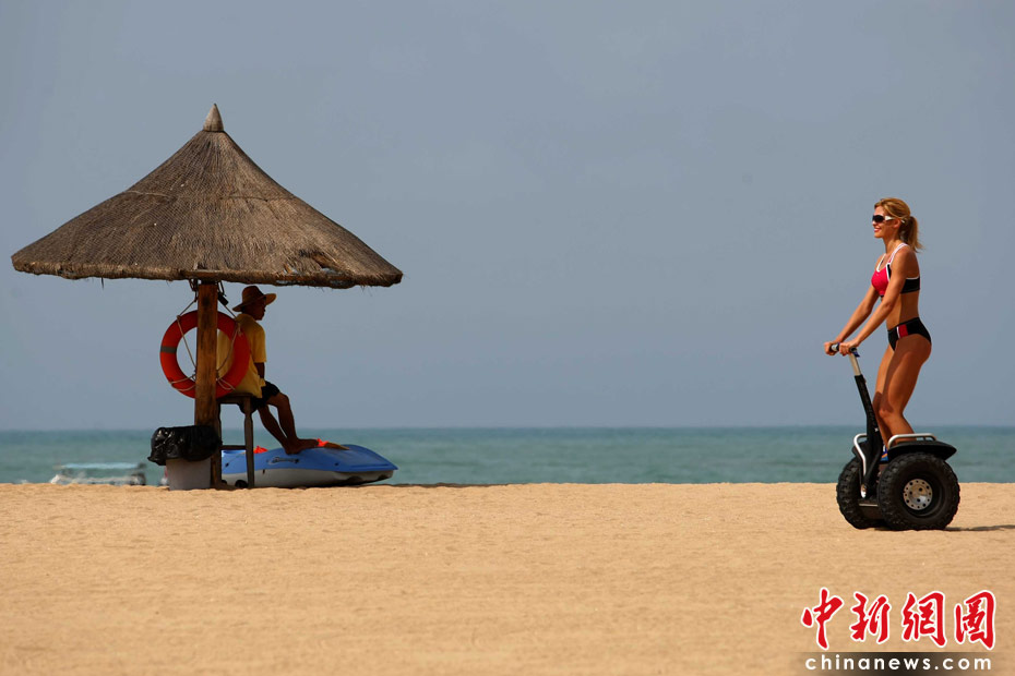 5月22日,一場沙灘趣味運動會在三亞海邊舉行,全球64位比基尼佳麗悉數(shù)登場,展現(xiàn)自己的運動天賦。中新社發(fā) 富田 攝