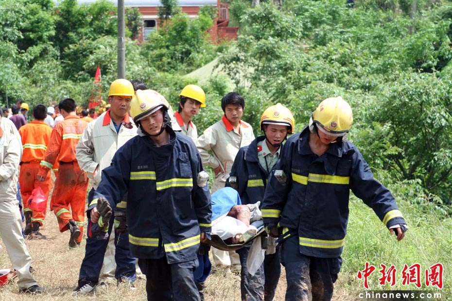 中新網東鄉5月23日電(艾永全 何柳斌 劉占昆)23日下午14時,距離滬昆鐵路客運列車脫線事發已經12小時,武警、消防、醫護、交警、特警仍在事故現場緊急救援。 艾永全 攝